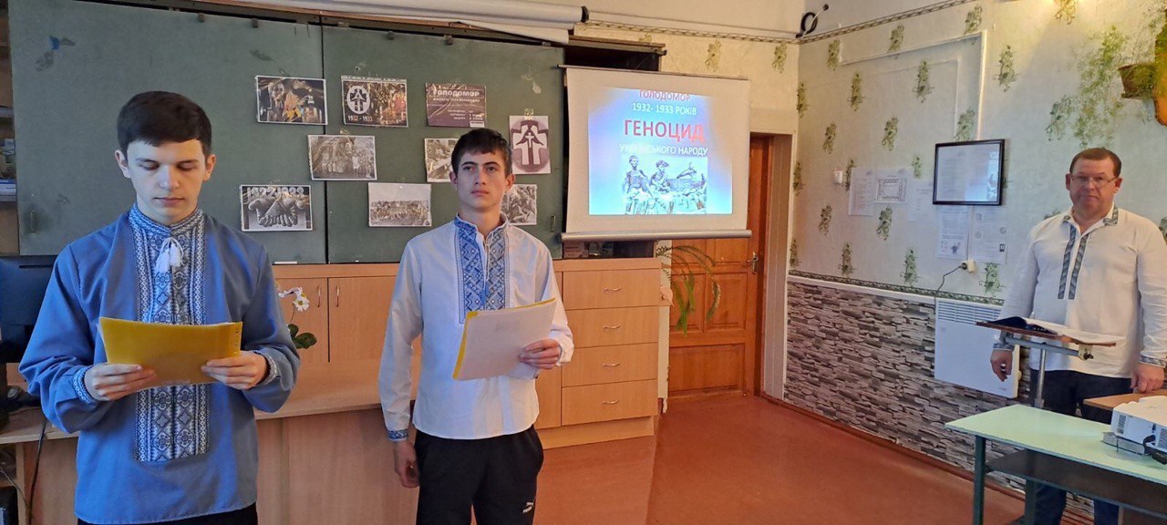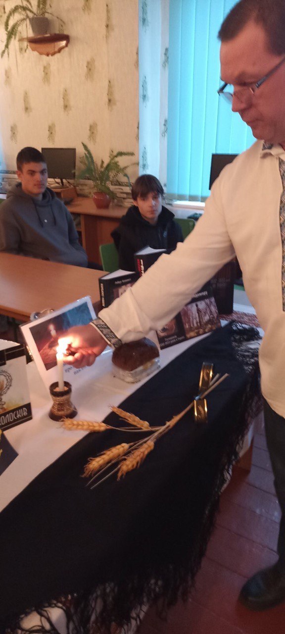 БЕЗ ВІЙНИ. БЕЗ ВИНИ…. Із чорної далини чутно голоси очевидців про страшну трагедію українського народу, Охоплюють спазмами болю душі живих. Та в цих голосах немає крику, немає розпачливої жалоби – є тихе, скорботне висповідання баченого, пережитого. Слова роками німіють – нема вже душевних сил для виплакування цього горя. Це горе – за межами болю. Люди не хотіли вірити, що це могли творити… люди. У ДНЗ «Крижопільський професійний будівельний ліцей» до Дня памʼяті жертв голодоморів в Україні майстром виробничого навчання 13 та 33 груп Макарєєвим Валерієм Миколайовичем була проведена година памʼяті та скорботи на тему: «Україна памʼятає!».